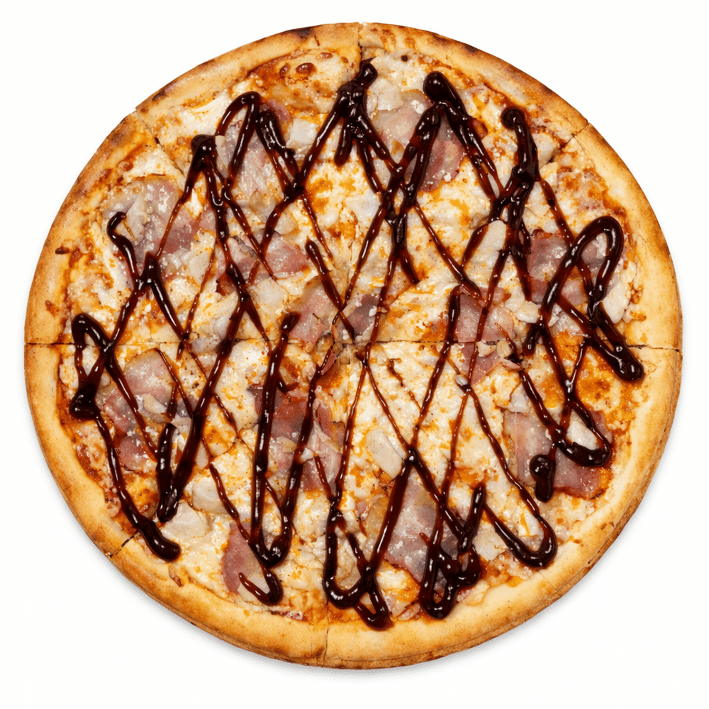 Фирменный соус, сыр моцарелла, бекон, куриная грудка, соус барбекю