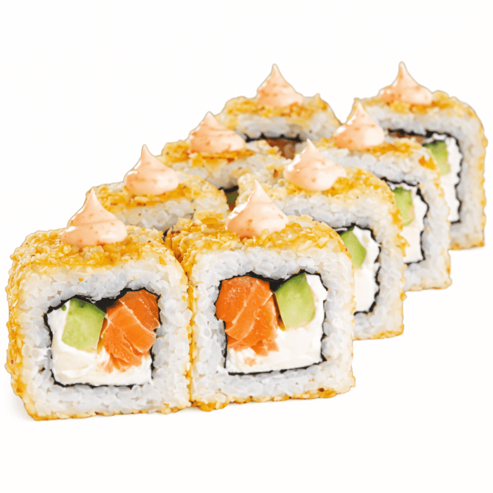 Копченый лосось, сливочный сыр, огурец, соус розовый. (180гр)
