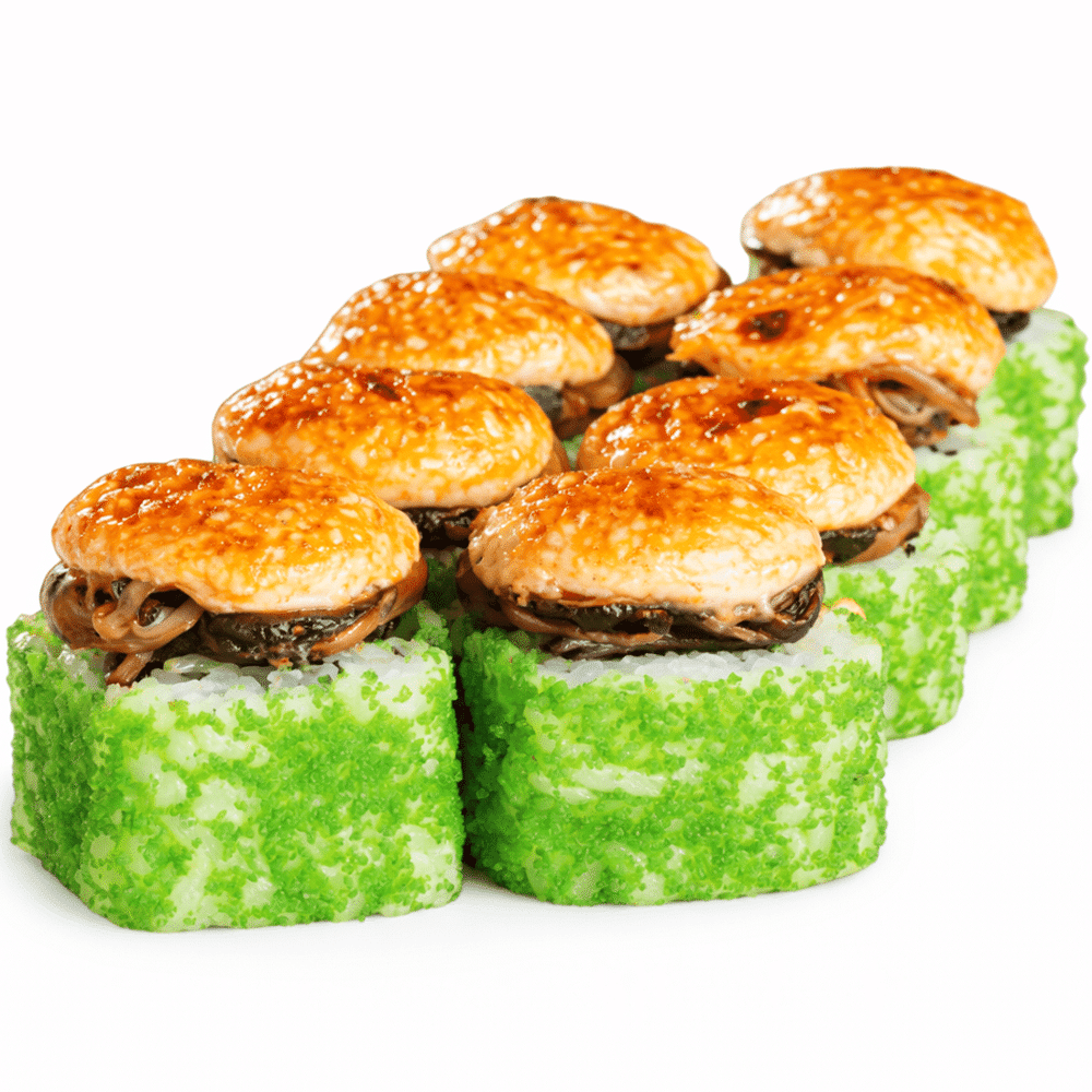 Мидии, соус розовый, сливочный сыр, огурец, икра масаго. (250гр)