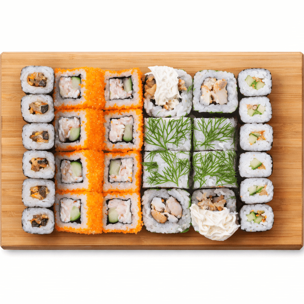 Цезарь ролл, калифорния, мини ролл с мидиями, мини ролл с огурцом. (550гр)