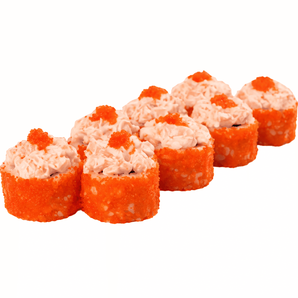 Лосось, сливочный сыр, омлет тамаго, икра, соус Спайси. (280гр)