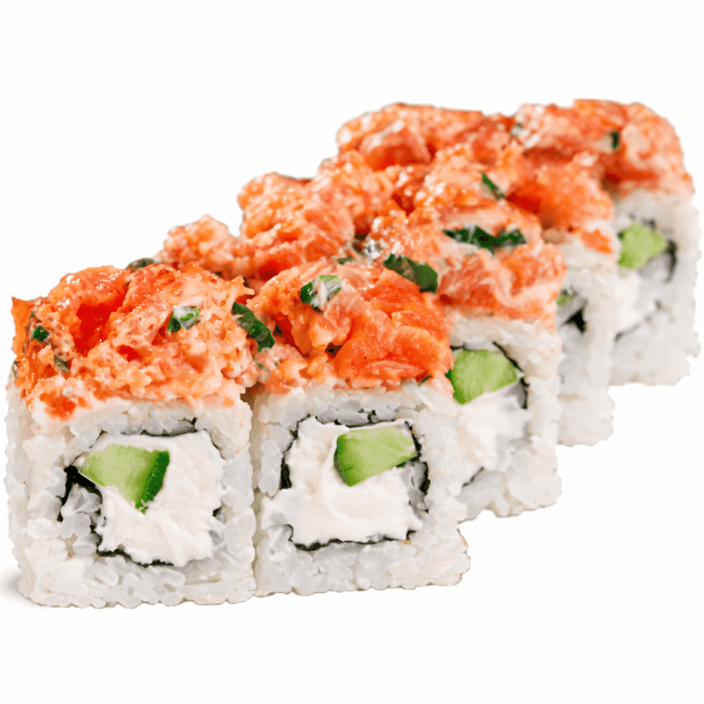 Тунец, огурец, сливочный сыр, соус спайси, зеленый лук. (227гр)